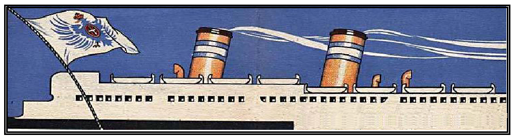 With a tonnage of 6149 grt, length of 430 ft, beam of 52ft 8in and service speed of 14 knots, the Regina d’Italia was launched on January 20, 1907. On May 15 of that year, the Regina d’Italia commenced her maiden voyage from Genoa to New York. The following October, she inaugurated the company’s Genoa-South America service as the steamship Tomaso di Savoia was not ready.
